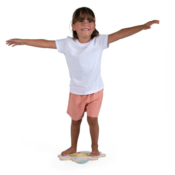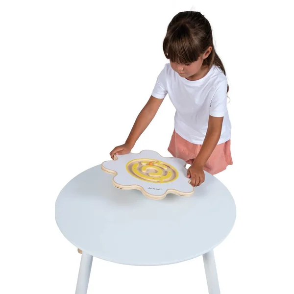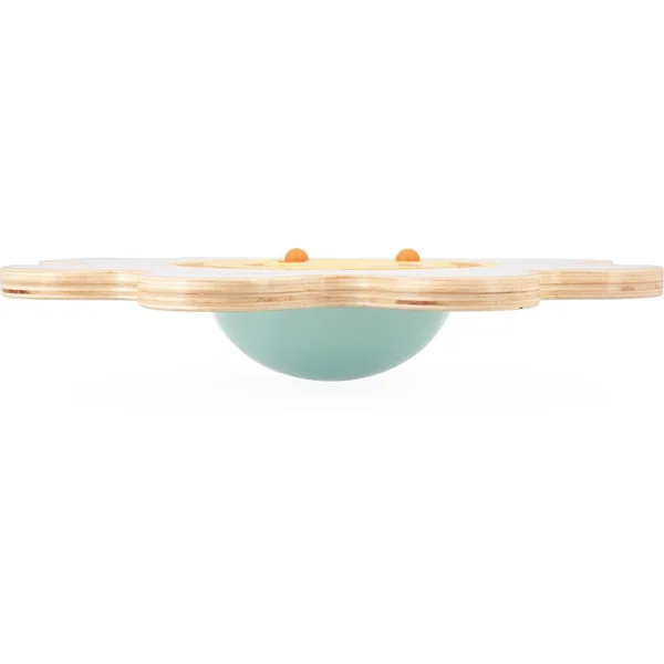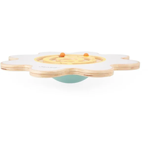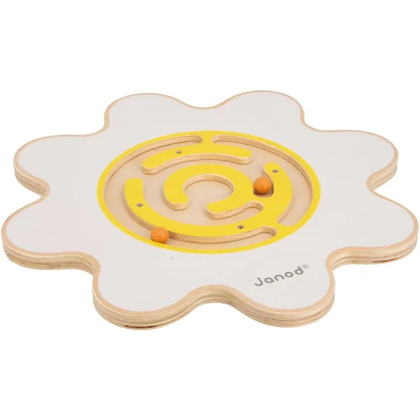 Attention cette fleur géante n’est pas aussi simple qu’elle en a l’air ! Elle cache une demi-sphère sous ses pétales et un grand labyrinthe sur le dessus. Il y a 3 possibilités de jeu ce qui permet d’adapter l’exercice au fur et à mesure de l’évolution de l’enfant. 1er niveau, avec les mains, sur une table, il faut faire rouler la bille à l’intérieur du labyrinthe jusqu’à gagner le centre. 2ème niveau, debout sur la fleur il faut faire preuve de concentration et d’adresses pour tenir en équilibre. Une fois à l’aise, le 3ème niveau permet d’ajouter de la difficulté en mettant une bille dans le labyrinthe et ainsi la faire rouler jusqu’au centre sans perdre l’équilibre ! Ce jouet est composé d’une planche d’équilibre et deux billes en bois. Jouet idéal pour que votre enfant développer le sens de l’équilibre et la concentration. Jouet en bois FSCTM. Jouet d’adresse pour les enfants à partir de 5 ans.