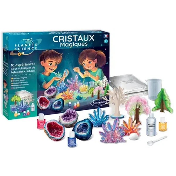 Et si créer des cristaux devenait un vrai jeu d’enfant ? Avec le coffret « Cristaux Magiques », la science se transforme en aventure fascinante ! En seulement quelques jours, fabriquez de superbes cristaux colorés et découvrez les secrets de la cristallisation à travers 10 expériences incroyables.