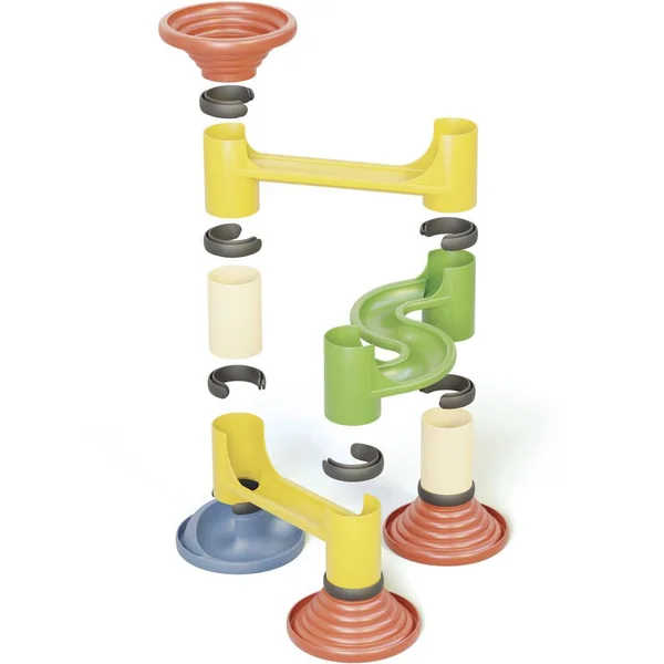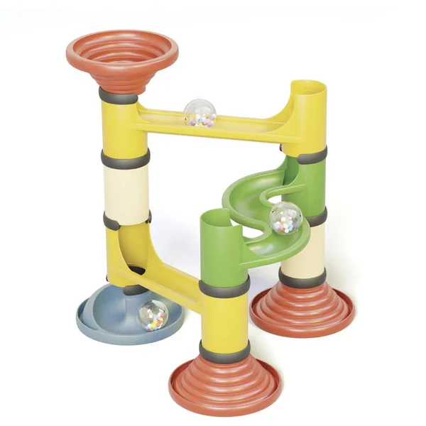 Migoga Junior Bio rapproche l’amusement des pistes àbilles avec l’amour et le respect pour l’environnement, à travers l’utilisationd’un bioplastique exclusif. Les couleurs naturelles relâchent et accompagnentl’expérience tactile de ce matériel spécial. Le parcours est dessinéexpressément afin que les enfants les plus jeunes puissent suivre la descentelente des grosses billes inclues dans la boîte. Contient: 2 pistes droites, 1 piste en S, 3 socles en entonnoir, 1 socle recueille-billes, 10 anneaux ouverts, 2 colonnes, 3 grandes billes avec hochets.
