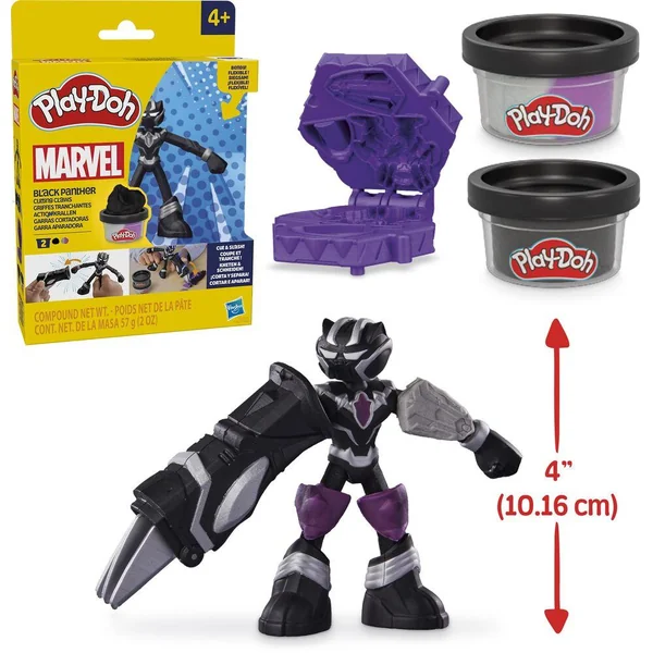 L’imagination des enfants passe en surpuissance avec le coffret Play-Doh Marvel Black Panther Griffes tranchantes ! La figurine flexible de 10 cm et les accessoires Play-Doh permettent aux enfants de recréer des histoires épiques. Ils peuvent imaginer se préparer au combat avec une armure Play-Doh, découper les obstacles avec les griffes rétractables et capturer les méchants Outriders Play-Doh.