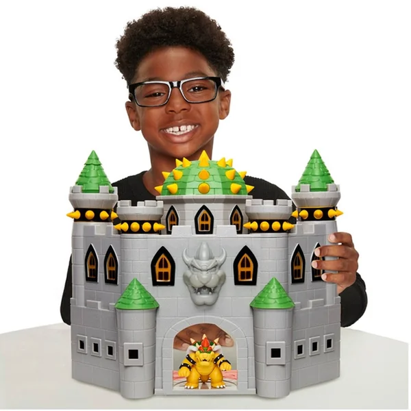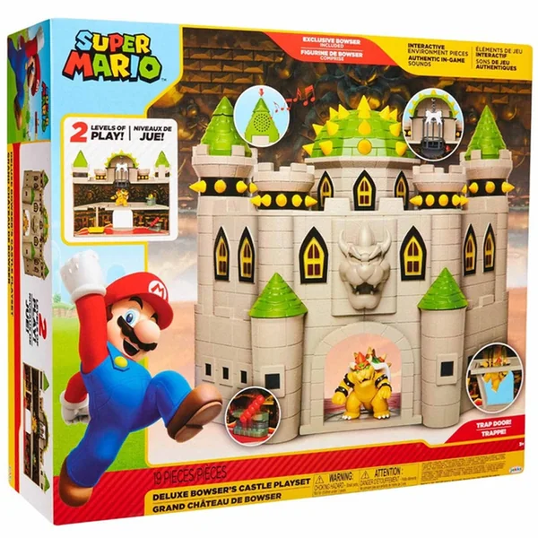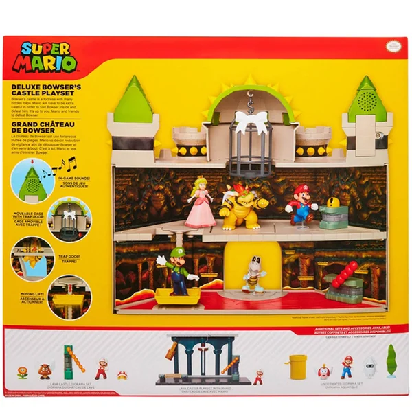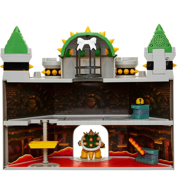 Le playset inclut une figurine de Bowser de 6 cm, des effets sonores avec la musique iconique du jeu.