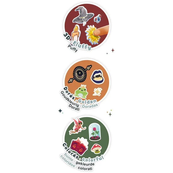 Plus de 200 stickers sur le thème des univers fantastiques et féériques. Des stickers potions, grimoires, dragons, licornes, baguettes, animaux mystérieux et bien d’autres encore !