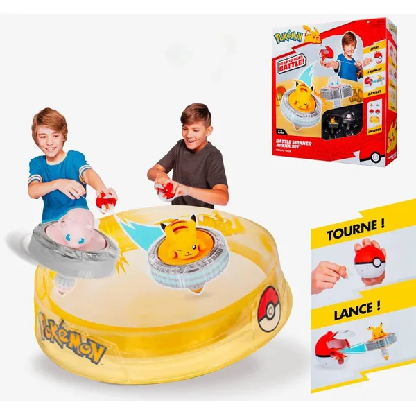 Revivez les plus grands combats Pokémon avec cette arène et ses 2 spinners ! Préparez les pokéball, et lancez le duel : Qui de Pikachu ou Mew sera le vainqueur?