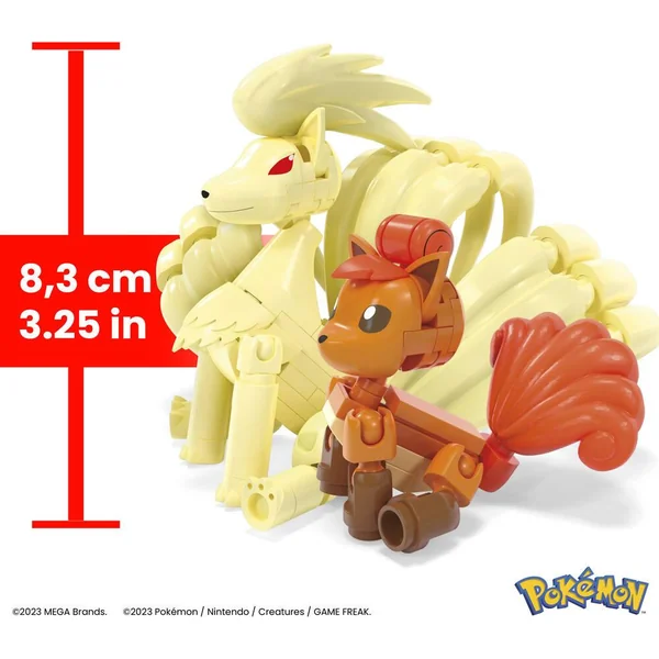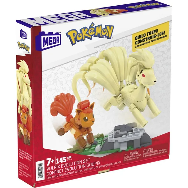 Préparez-vous à construire avec ce coffret Évolution Goupix, qui comprend les figurines Goupix et Feunard à assembler. Construisez Goupix et Feunard, puis exposez-les sur un tapis d’herbe en guise de décor. Feunard peut prendre une multitude de poses grâce à ses neuf queues articulées. Goupix est lui aussi articulé pour un maximum de possibilités. Associez ces figurines à d’autres coffrets de construction MEGA pour encore plus d’aventures Pokémon ; articles vendus séparément.