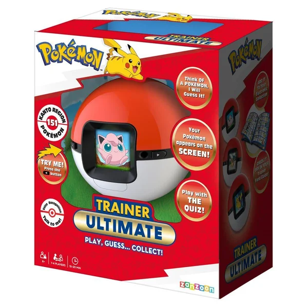Un jeu de devinettes Pokémon exceptionnel offrant une expérience inédite aux fans pour développer leur expertise ! Devinez et collectionnez des Pokémon de la région de Kanto : après quelques questions, le jeu vous révèle le Pokémon auquel vous pensez. Regardez les Pokémon apparaître sur l’écran LCD couleur : un Pokémon s’affiche lorsqu’il est deviné. Parcourez votre collection de Pokémon : utilisez les flèches pour parcourir votre collection et trouver les Pokémon manquants. Testez vos connaissances avec le quiz : écoutez les informations et choisissez le Pokémon correspondant à l’écran. Modes solo et multijoueur disponibles.
