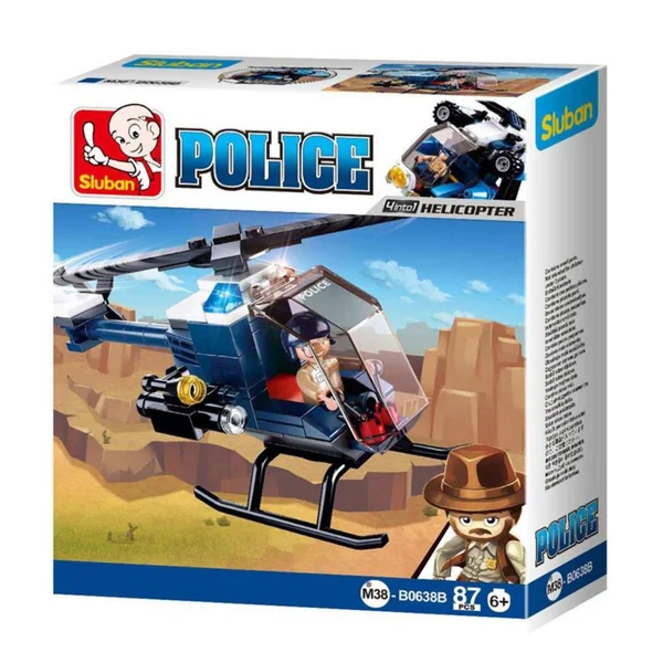 La police est indispensable pour la société et ne doit pas manquer à Sluban. Cet hélicoptère de la série « Police » te seras indispensable pour sauver et rassurer la population de ton village, des voleurs, des infractions ou bien pour retrouver une personne disparue. Alors construit vite ton véhicule de 88 pièces et d’une mini-figurine ! Avec les autres véhicules de la série Police, ces héros du quotidien protègeront sans relâche les rues et les aires de Sluban. Les briques Sluban sont compatibles avec tous les blocs de construction déjà connus sur le marché.
