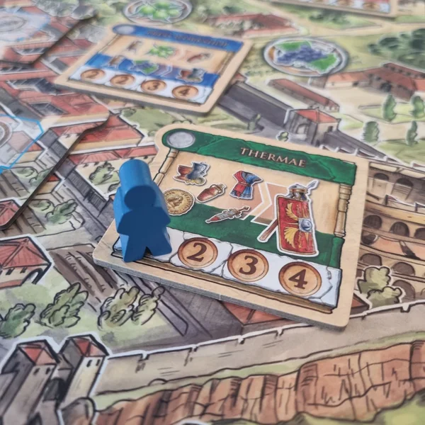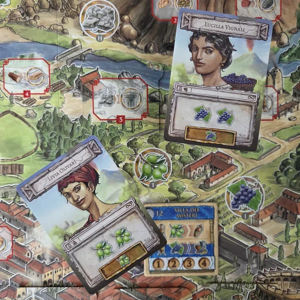 Nous adorons les illustrations de style mosaïque sur les cartes ainsi que les références historiques. Nous aimons aussi la clarté des chaînes de production et la possibilité d’échanger en dehors de ces circuits. Lors de notre première partie, nous avons été trop ambitieux et avons construit le Forum trop tôt, rendant presque chaque tour consacré uniquement à récolter des ressources pour les offrandes. Après cette erreur, la deuxième partie a été bien plus fluide. C’est un jeu qui gagne à être joué à plus nombreux, pour mieux équilibrer la possession et l’utilisation des bâtiments (un élément crucial du moteur de jeu). Un excellent jeu pour les amateurs de engine building et de mécaniques semi-coopératives.