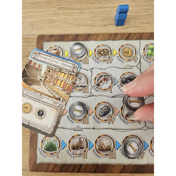 Tandis que vous développez votre partie de la ville, les autres en font autant. Chaque joueur a sa propre vision de l’avenir de Pompéi, et les progrès de chacun sont interdépendants. Le leader le plus influent installera son armée au Castrum, le camp militaire aux portes de la ville, prenant ainsi le contrôle du destin de Pompéi.