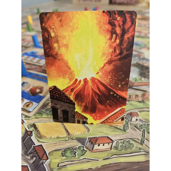 Le Vésuve observe à distance, mais sa patience est limitée. Pendant la phase du Calme, il dort. Mais dès qu’un bâtiment prestigieux est construit, les ambitions des joueurs deviennent claires et le Vésuve s’éveille. Dès cet instant, les joueurs devront faire des offrandes communes pour éviter une éruption et la perte de précieuses ressources.
