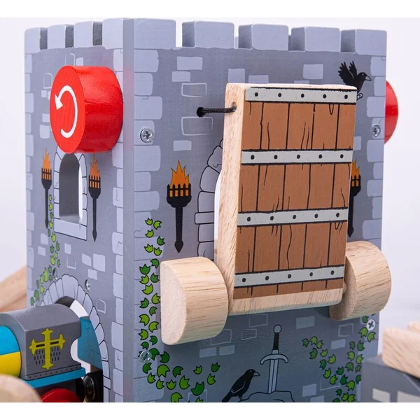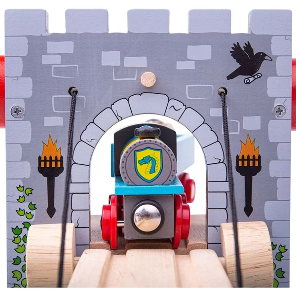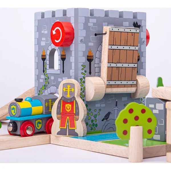 Château avec un croisement et un pont-levis en bois. Soulevez le pont mobile à l’aide du treuil rouge pour arrêter les ennemis sur vos traces. Une fois que les ennemis sont hors de vue, abaissez le pont et préparez-vous pour la prochaine aventure ! Vous pouvez vivre des possibilités infinies et des heures de plaisir avec cet excellent élément de jeu en bois Bigjigs rail pour circuits de train. Parfaitement compatible avec d’autres accessoires Bigjigs Rail – Donjon. Le paquet ne comprend pas de train ni d’autres accessoires.