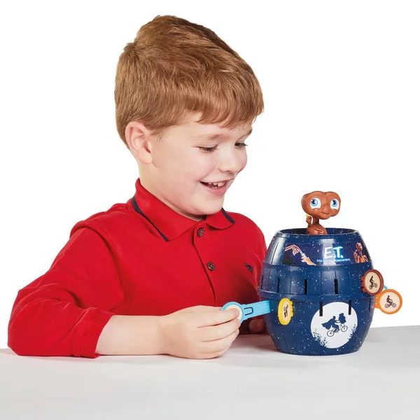 Une version du célèbre Pic Pirate à l’effigie de E.T. à l’occasion des 40 ans de la sortie du film ! Voici un E.T. qu’il ne faut pas renvoyer dans l’espace… Le but du jeu : ne pas être celui qui l’aura trop titillé en plantant les tiges, pour ne pas être éliminé et rester le dernier joueur en course ! Mais attention, une tige de trop et hop ! E.T. bondit dans l’espace ! Alors, qui sera le plus malin et se débarrassera de toutes ses tiges sans faire sauter E.T. ? Suspens ! Un jeu pour des heures de rigolade entre copains ou en famille ! De 2 à 4 joueurs. Dès 4 ans. • Découvrez la version Jurassic World du tonneau des fous rires ! Enfilez à tour de rôle une épée dans le tonneau, le premier qui fait sauter le T-Rex a perdu ! • Inclus : 1 tonneau, 1 T-Rex, 24 épées colorées (6 rouges, 6 bleues, 6 jaunes, 6 vertes) • A partir de 4 ans • Durée de la partie : aléatoire • Nombre de joueurs : de 2 à 4 joueurs • Un jeu de suspens qui provoque surprises et crises de rire, accessible à tous les membres de la famille, même les plus petits.