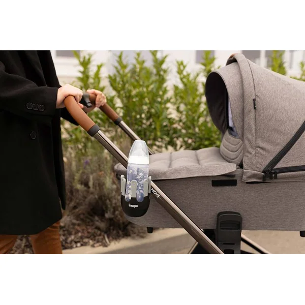 Le support flexible pour boissons est conçu pour accueillir des bouteilles pour enfants, des tasses à café et des bouteilles d’eau plus grandes d’un diamètre allant jusqu’à 8,5 cm. Le système rotatif à 360° peut être fixé à la poignée de presque toutes les poussettes grâce à une installation simple avec du velcro. Le système unique à cinq doigts au design moderne assure une meilleure stabilité du verre ou de la bouteille et empêche les renversements accidentels.