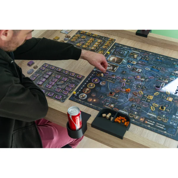 Ce porte-gobelet pour meeples et boissons se distingue par son design ingénieux et compact, pensé pour les joueurs qui priorisent la sécurité et la fluidité lors des setups :