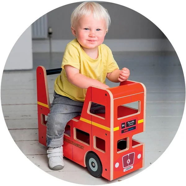 Joli porteur en forme de bus londonien à étage en bois (contreplaqué de bouleau) issu de forêts gérées durablement. Il y a aussi un espace de rangement pour les jouets (non fournis). Bus 2 en 1 : l’enfant peut s’asseoir dessus ou le pousser. Coloré et attrayant, ce bus amuse les enfants et les encourage à bouger en développant leur motricité et leur équilibre. Hauteur de l’assise : 20 cm. Poids maximum de l’utilisateur : 50 kg. Pas d’assemblage requis.