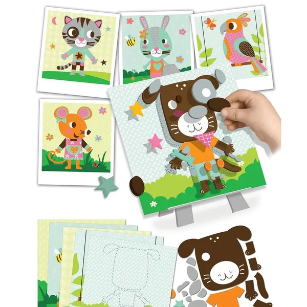 Un coffret créatif pour composer les jolis animaux familiers. En supperposant les épaisses pièces de mousse autocollantes les enfants pourront exposer leur joli tableau en relief sur le chevalet fourni. Contient 5 planches de formes en mousse autocollantes prédécoupées, 5 cartes, 1 chevalet et une notice pas à pas.
