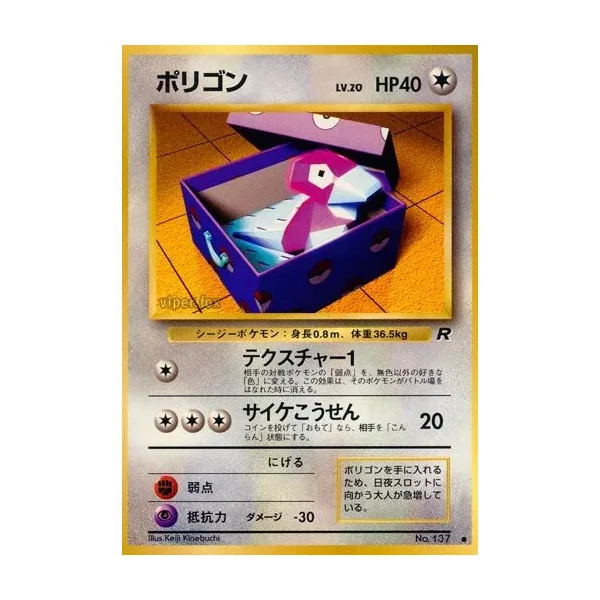 Découvrez Porygon (rog050), une carte Pokémon de l’extension Rocket Gang, provenant du bloc Original Era. Idéale pour compléter votre collection, cette carte Commune plaira autant aux collectionneurs qu’aux joueurs.