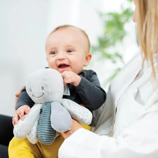 Peluche poulpe aux différentes matières douces et sons pour stimuler bébé.