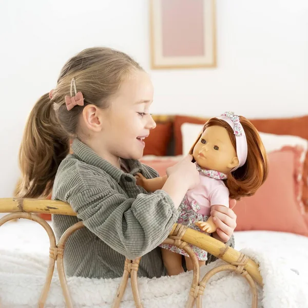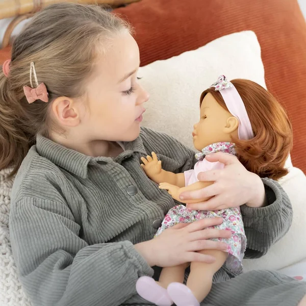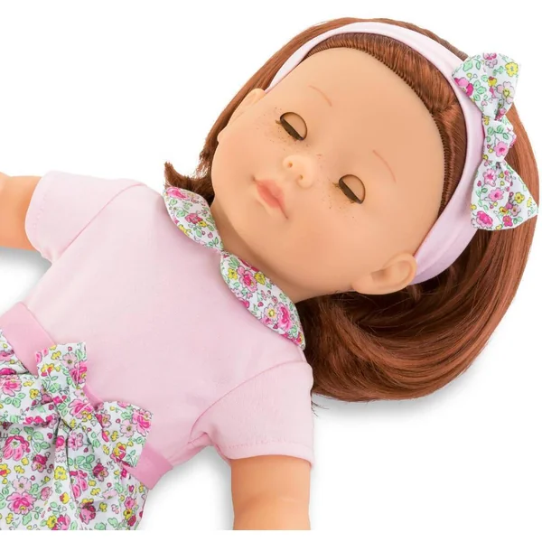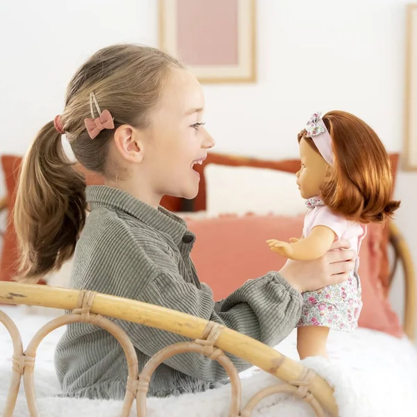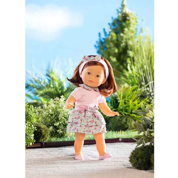 Pia est prête pour l’arrivée des beaux jours ! Poupée de 36 cm en édition limitée; Pia a un corps souple « effet » sous-vêtements avec des cheveux roux courts; faciles à coiffer. Son visage; ses bras et ses jambes; à la délicate senteur de vanille; sont en vinyle doux au toucher. Avec ses yeux dormeurs; elle dort quand on la couche sur le dos. Elle est habillée d’un t-shirt rose avec un col claudine fleuri et d’une jupe fleurie avec un nœud à la ceinture. Elle porte un bandeau assorti dans les cheveux et des ballerines roses aux pieds. Pia dispose d’un mix and match de plus de 100 références de vêtements et accessoires.