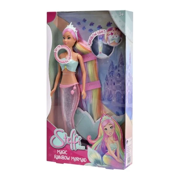 La poupée Steffi Sirène Magique est une sirène charmante qui vient avec une queue scintillante et lumineuse. Elle est idéale pour les enfants qui aiment jouer à des aventures maritimes et créer leurs propres contes de fées.