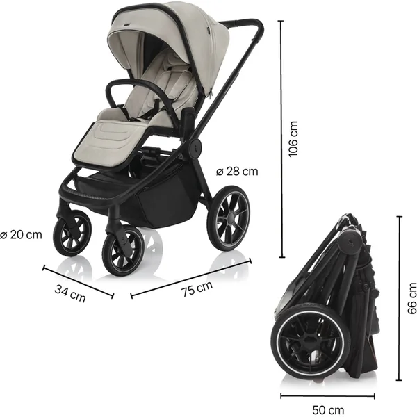 • Dimensions de la poussette dépliée (l × L × h) : 75 × 34 × 106 cm