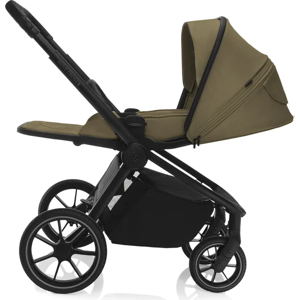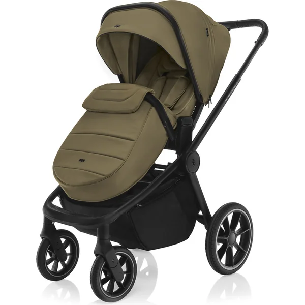 Parmi les détails pratiques, on trouve une boucle magnétique pour la ceinture, un panier de rangement fermé, une barre rabattable et une poignée pour transporter la poussette pliée. La poussette se plie et se transporte facilement d’une seule main. L’emballage comprend une housse de pluie, un couvre-jambes et un sac à langer stylé.