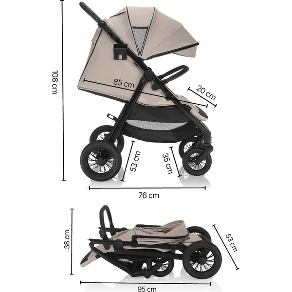 • Dimensions de la poussette dépliée : 108 × 76 × 85 cm