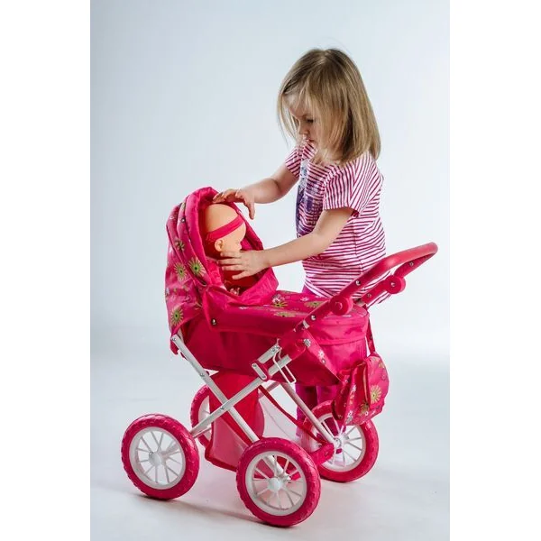 La poussette pour poupées comprend un espace de rangement en bas de la poussette et un sac pour les essentiels des petites mamans.