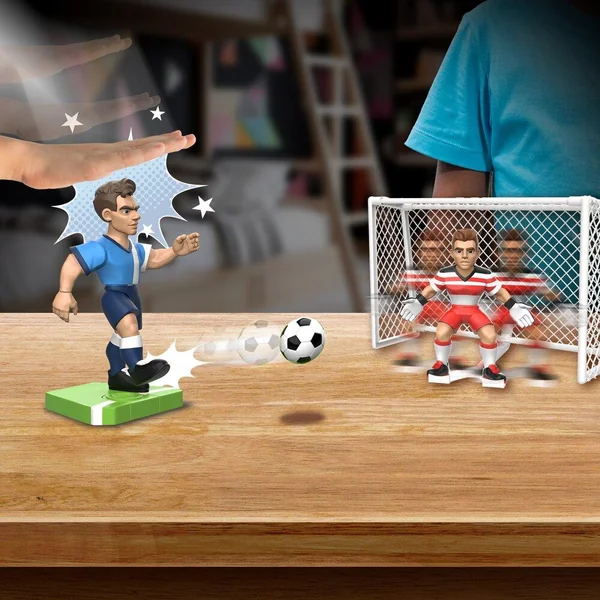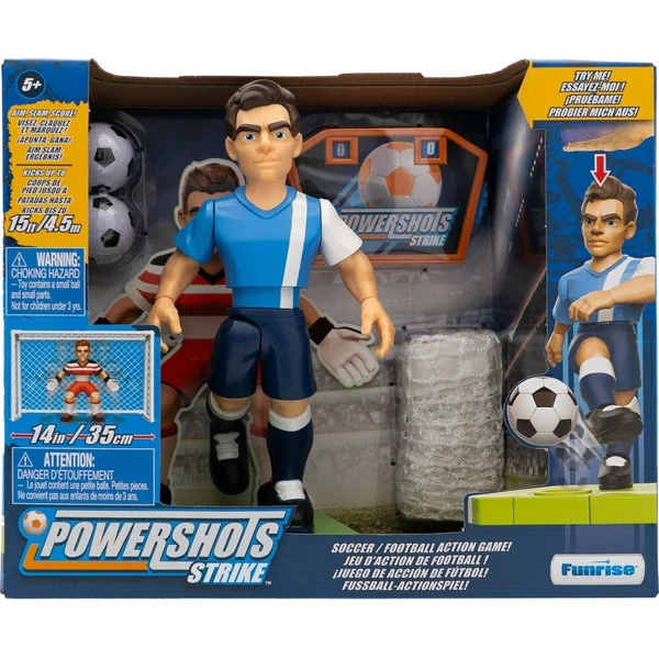 Jeu d’action de football ! Visez claquez et marquez ! Coup de pied ultra réaliste. Shoot jusqu’à 4,5 m ! Joue seul ou à plusieurs. Contenu : 1 joueur PowerShot d’environ 20 cm, 1 but de 35 cm avec 1 vrai filet, 1 gardien, 2 ballons, 1 tableau des scores et 1 feuille d’autocollants. Fonction Try Me : mécanique, pas besoin de piles.