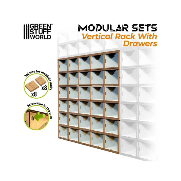 Ensemble de tiroirs en bois MDF, parfaits à combiner avec nos présentoirs modulaires pour peintures. Il est recommandé d’utiliser de la colle blanche pour une finition plus solide.