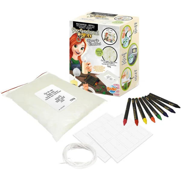 Utilise la cire de soja pour réaliser des bougies naturelles ! Tu peux faire fondre cette cire au micro-ondes ou au bain-marie ! Un rouleau de mèche en coton est également inclus. La cire peut être utilisée avec le coffret Professional Studio Bougie.