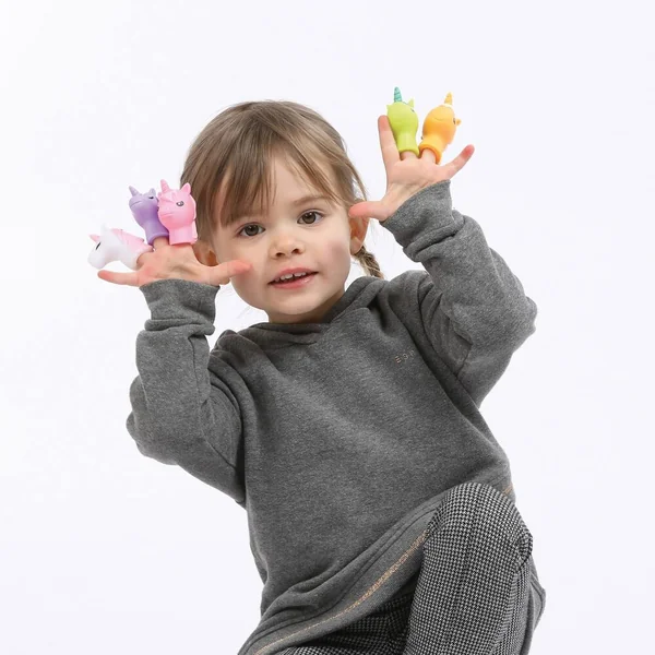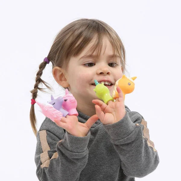 Pour inventer de belles histoires. Ce lot de 5 petites marionnettes de doigts offre une belle manière d’animer des moments de complicité entre les enfants et leurs parents. Les marionnettistes donneront vie aux jolies licornes. Ils inventeront des histoires magiques les plus extraordinaires et créeront des jeux de contes de fées enchanteurs ! Les marionnettes permettent aux enfants de développer leur habilité, leur imaginaire et leur vocabulaire. En grandissant ils s’amuseront à créer leur propres histoires. Une très bonne façon d’apprendre à parler tout en s’amusant ! Ces jolies licornes, au design rigolo, sont spécialement conçues pour les petites mains. Réalisées en plastique doux, hygiénique et résistant aux mordillements ainsi qu’à l’eau. A l’heure du bain ou du couché, il y a toujours une occasion pour jouer, partager des sourires et découvrir des mondes imaginaires en famille !