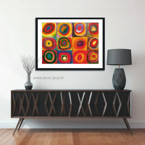 Ce puzzle représentant des « Carrés et cercles concentriques » de Vassily Kandinski est composé de 1000 pièces toutes différentes avec un toucher « soft-touch ».