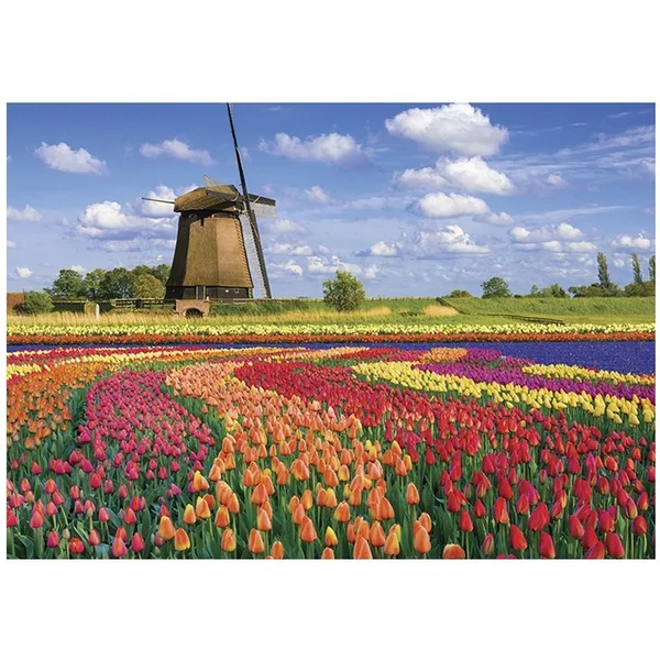 Ce puzzle représentant un « Champs de tulipes » en Hollande est composé de 1000 pièces toutes différentes avec un toucher « soft-touch.
