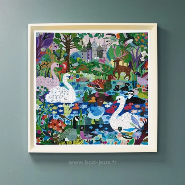 Des canards, des cygnes, des lapins, un renard… chacun est à sa place dans cette scène foisonnante et pourtant si sereine…