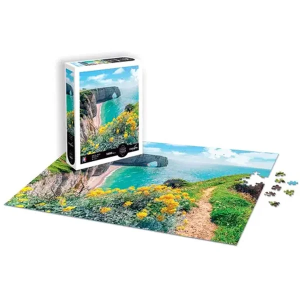 Ce puzzle représentant une vue des Falaises d’Etretat en Normandie est composé de 1000 pièces toutes différentes avec un toucher « soft-touch ».