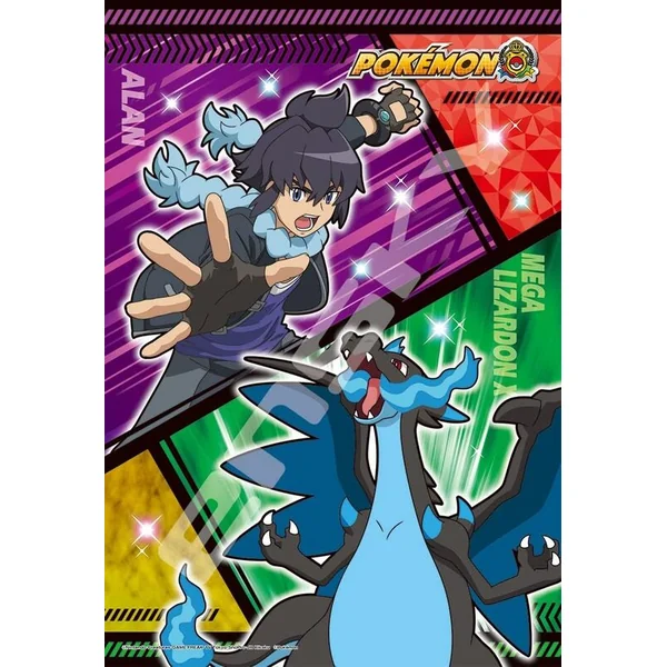 Ce puzzle « Pokémon » représente Alain et son Mega Charizard et compte 300 pièces, une fois assemblé, il mesurera 38 cm x 26 cm.