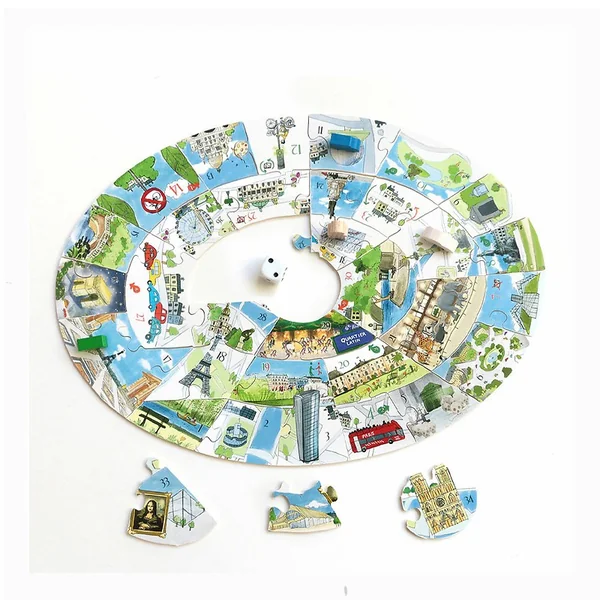 Recompose le puzzle représentant les quartiers de Paris au fur et à mesure de ton avancée, et gagne la partie de jeu de l’oie en évitant els cases « Malus » !