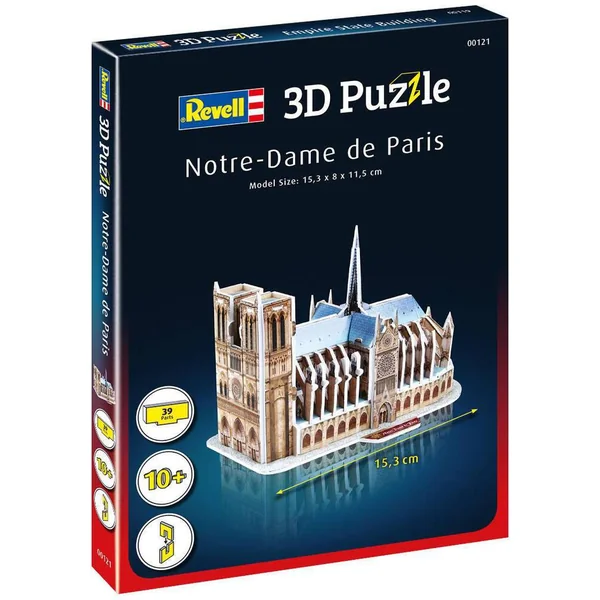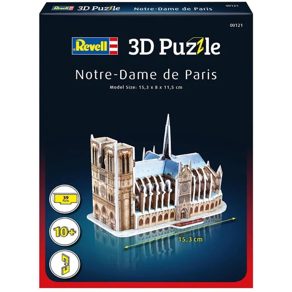 Puzzle en 3 dimensions. Entre maquette et puzzle, construisez Notre Dame de Paris en 3D. 39 pièces à assembler. Modèle monté 15,3 cm de long. En matériau EPS, très détaillé, montage sans outil et sans colle.