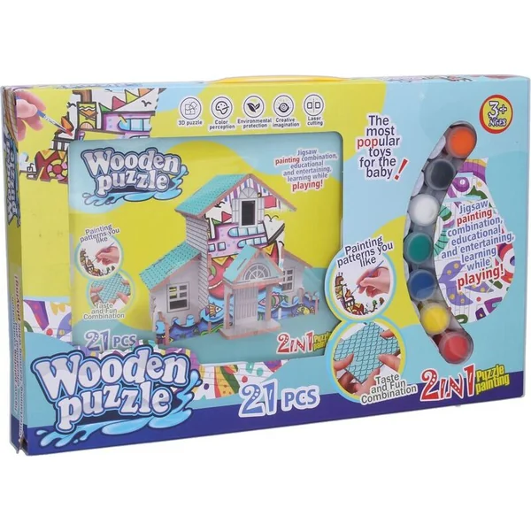Puzzle 3D maison en bois avec couleurs
