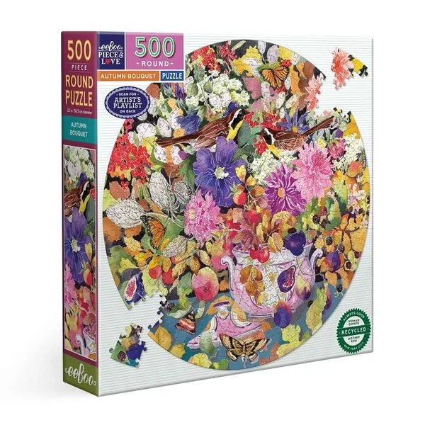 Puzzle rond de 500 pièces, idéal pour ceux qui ne veulent pas s’engager dans un puzzle de 1000 pièces. Modèle inclus.