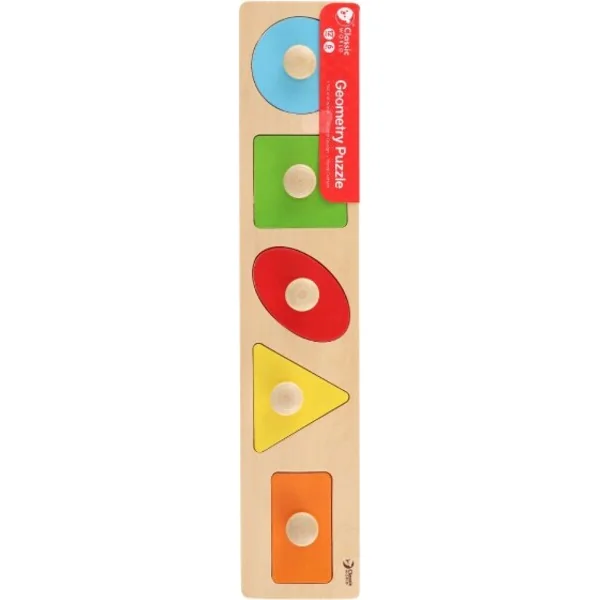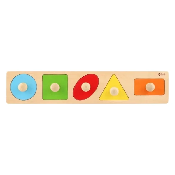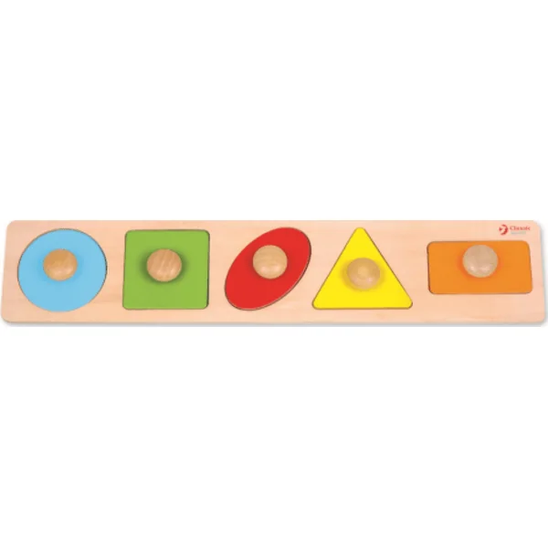 - Le plateau en bois contient 5 formes géométriques
