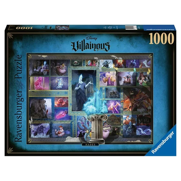 Pour les puzzleurs entraînés, le format 1000 pièces est idéal pour profiter de l’activité du puzzle, propice à la détente et à la relaxation. Chaque pièce a une forme unique et permet un assemblage parfait de l’image choisie. Inspirée du jeu de société Disney Villainous par Ravensburger, cette illustration exclusive met à l’honneur l’univers machiavélique du dieu des enfers Hadès, le célèbre méchant Disney du monde d’Hercule ! Pièce après pièce, révélez tous les détails des scènes les plus mémorables de ce dessin animé d’exception, aux côtés d’Hadès et de ses démons Peine et Panique.