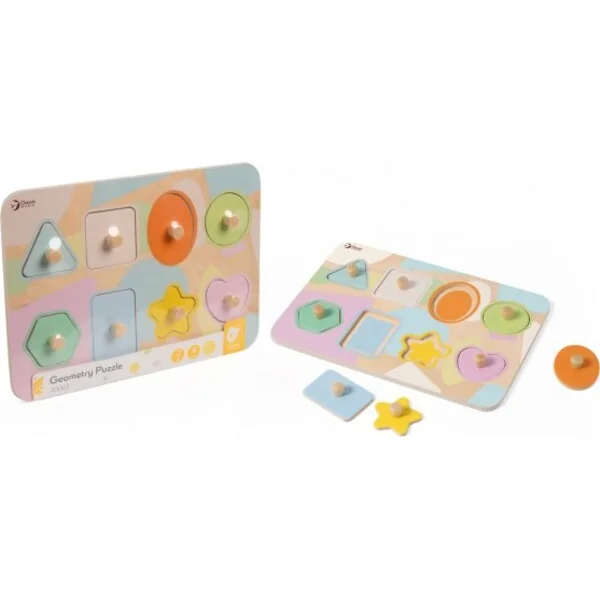 Le puzzle en bois à encastrement avec poignées de la société CLASSIC WORLD se compose d’une planche épaisse avec différentes formes géométriques dans des couleurs pastel. Il aide l’enfant à reconnaître visuellement et par le toucher les figures géométriques planes. Lorsque les enfants essaient de placer les formes du puzzle aux bons endroits ou de créer des combinaisons, ils développent ainsi leurs capacités à distinguer les formes et les couleurs.