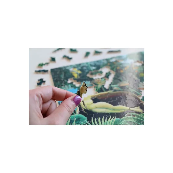 Grâce à des scies à chantourner, les artisans découpent à la main chaque pièce, leur donnant des formes différentes et les rendant ainsi uniques. Ils suivent le mouvement de la main de chaque artiste et s’inspirent des lignes de couleurs pour un jeu adapté à chaque tableau… La peinture est mise en valeur pour faire ressortir tous les détails ! Les ciels sont alors découpés en forme de nuage et les bâtiments sont travaillés de manière à créer une impression de relief et de perspective. La reconstitution du puzzle devient un jeu à deux, ou l’on cherche à déjouer les pièges créés par la découpeuse.