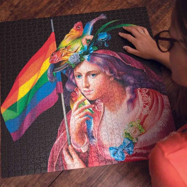 Le choix du personnel de Liz : Le style classique de l’art pictural parfaitement juxtaposé au drapeau de la fierté arc-en-ciel contemporain fait de ce puzzle un achat immédiat dans mon livre.