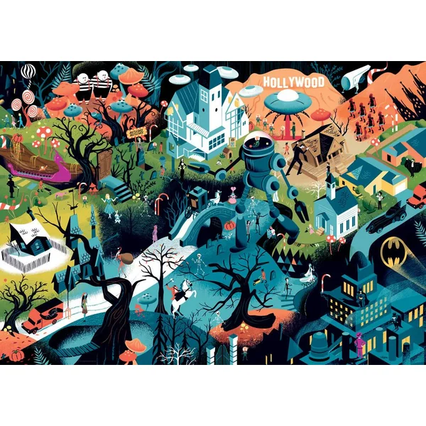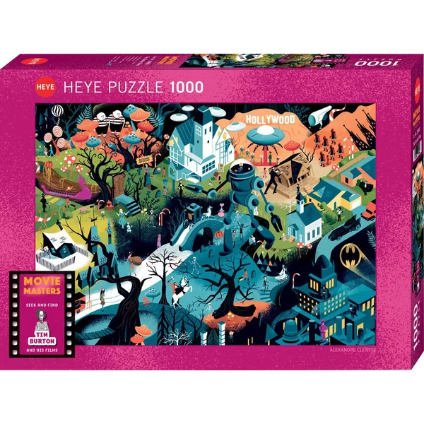 Puzzle 1000 pièces Tim Burton Films de la marque Heye, de la série : Movie Masters et de l’artiste : Alexandre Clérisse. Dimensions du puzzle monté : 50 x 70 cm.