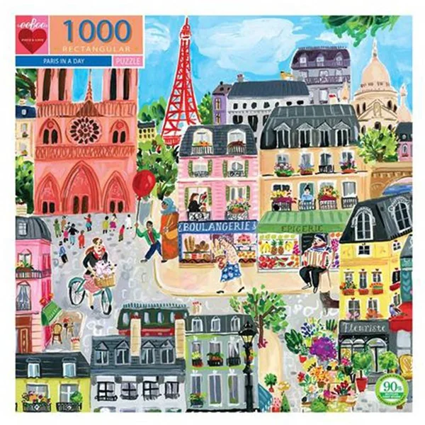 Découvrez le Puzzle Paris in a day – 1000 pièces de Eeboo pour les amoureux des Puzzles de 10 à 99 ans.