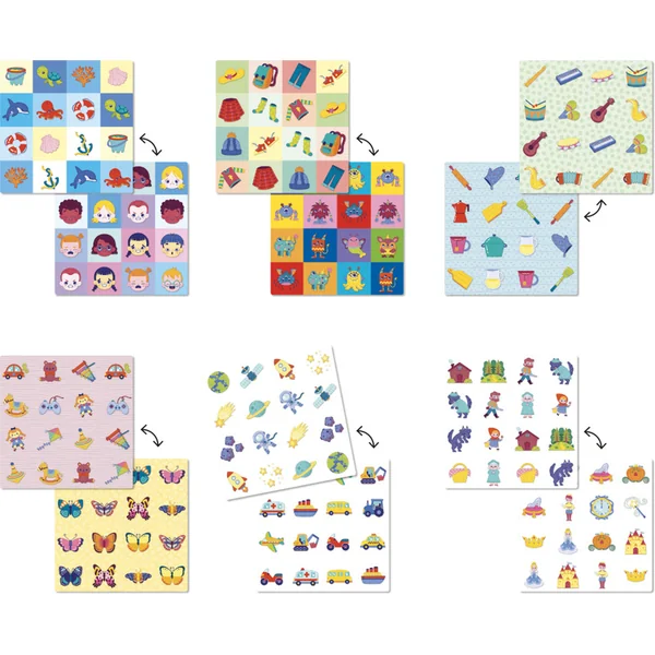 Jeu de mémoire amusant pour les enfants à partir de 3 ans. Les joueurs disposent de 12 cartes interchangeables et de 192 dessins originaux pour exercer leur concentration et leur mémoire visuelle.