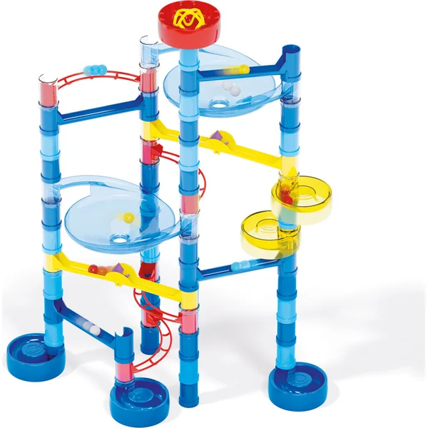 La piste à billes Quercetti offre des possibilités de construction infinies – les enfants peuvent créer des parcours fonctionnels avec des tunnels, des spirales et des toboggans selon les instructions ou leur propre imagination. Les billes colorées démarrent en même temps, mais grâce aux différents parcours, elles s’engagent dans une aventure à travers l’océan – tourbillonnant dans des eaux profondes, passant devant des îles tropicales et se perdant dans les courants marins.