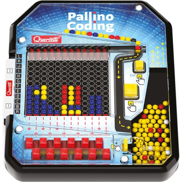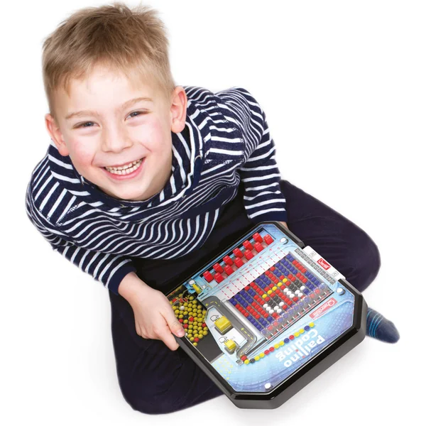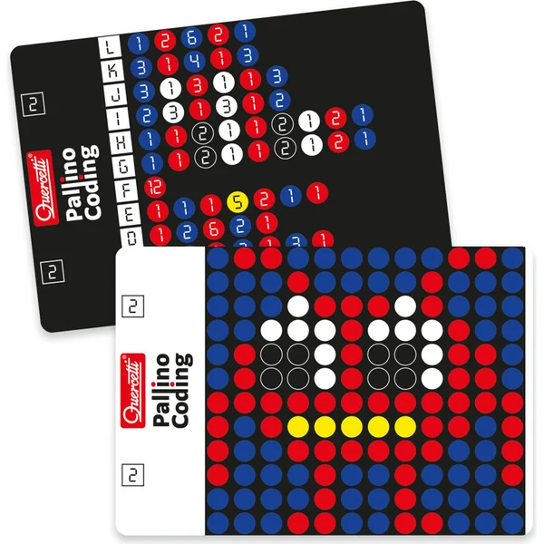 Pallino Coding est un jeu qui stimule la créativité des enfants en leur permettant de créer des mosaïques colorées à l’aide d’instructions « programmatiques ». En planifiant et en créant des mosaïques, les enfants font leurs premiers pas dans le monde du codage ou de la programmation. Le jouet propose deux variantes de jeu. La première est plus créative et consiste à créer des mosaïques colorées selon des modèles représentés sur des cartes. La seconde permet aux enfants de créer des mosaïques selon les instructions sur les « côtés de codage » des cartes.